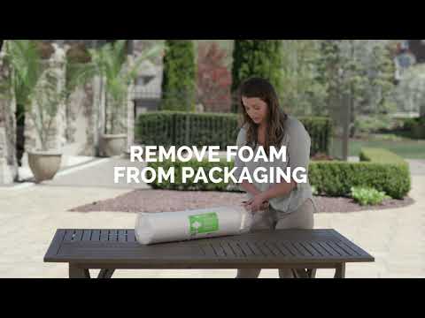 This Arden Selections ProFoam Rounded Back Outdoor Dining Seat Cushion is made with the same high-performance, long-lasting, and durable foam that came with your outdoor furniture set. These firm, yet comfortable outdoor foam patio cushions have a sleek and modern look, adding clean lines to refresh your outdoor furniture. The foam comes in a compressed roll to reduce shipping waste and easily slips into the provided cushion cover. With the clean finish of the piping and two sets of ties to hold it in place, this 100% solution dyed acrylic cushion cover features weather and UV resistant EverTru Acrylic fabric, which resists fading and repels water and stains.